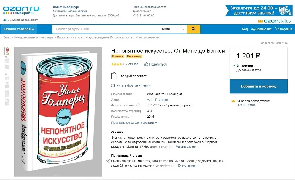 Эта книга - ответ тем, кто считает современное искусство не то заумью снобов, не то откровенным обманом. Какой смысл заключен в "Черном квадрате" Малевича? Что имел в виду Энди Уорхол, изображая бесчисленные банки томатного супа? И причем тут вообще писсуар? В своем захватывающем и подчас шокирующем рассказе о полуторавековой истории современного искусства Уилл Гомперц не ставит перед собой задачу оценивать те или иные произведения. Он дает читателям "краткий курс" культурных кодов-подсказок, позволяющих самостоятельно ориентироваться в современном художественном пространстве и разбираться, где "пустышка", а где шедевр.