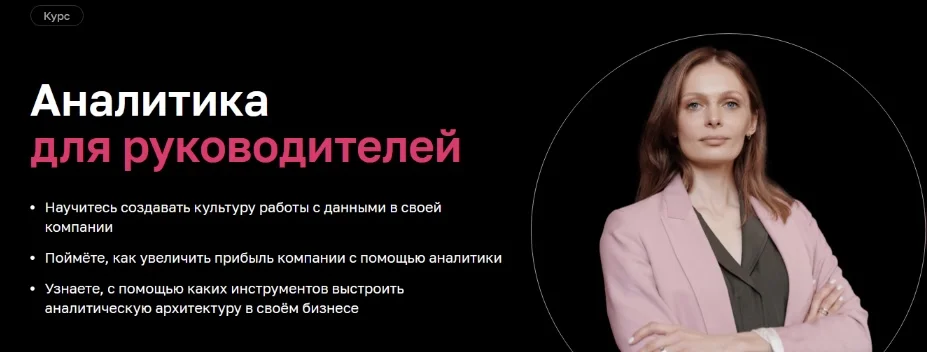 Найдёте новые точки роста компании, узнаете, как масштабировать бизнес, актуализируете маркетинговую стратегию и составите план по внедрению аналитики в бизнес-процессы.