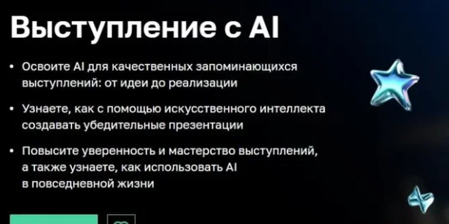 - Повысите уверенность и мастерство выступлений, а также узнаете, как использовать AI в повседневной жизни