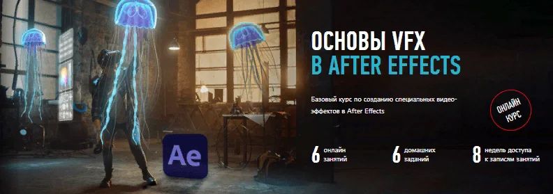 Это фундаментальный онлайн-курс по VFX в After Effects. Пройдя обучение, вы будете уметь делать всё: от базового композитинга до сложных 3D эффектов.