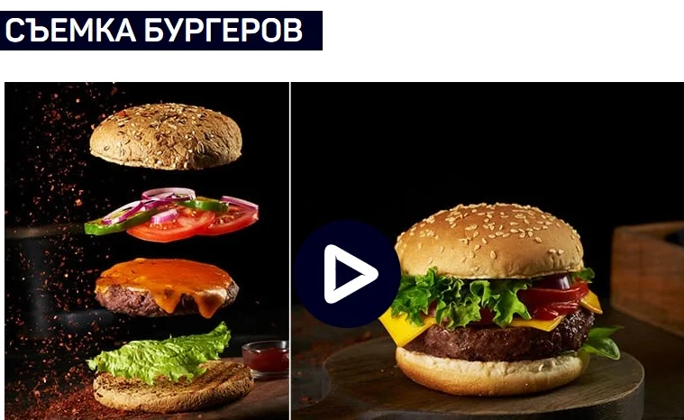 Съемка летающего бургера по слоям