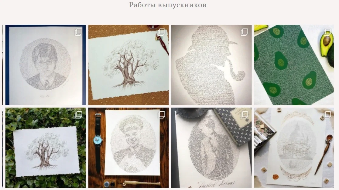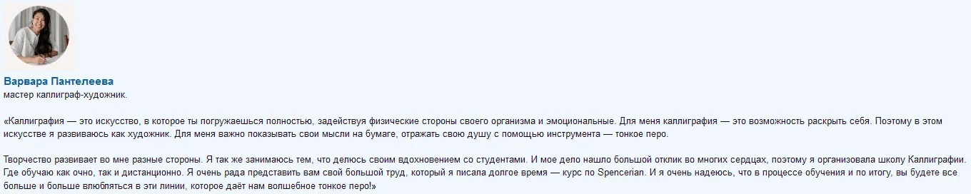 Изюминкой курса является то, что вы будете развивать в себе творческое письмо и после каждой темы будете создавать красивые картины с каллиграфией. В курс я так же включила направление «Каллиграфическая живопись», что даст вам возможность рисовать портреты.