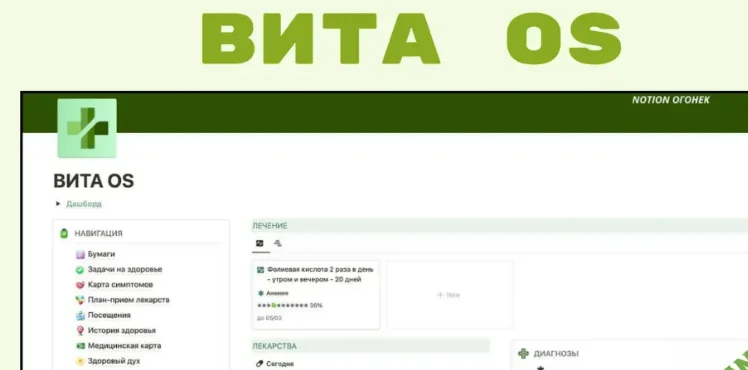 ВИТА OS - шаблон для организации и оцифровки всех процессов, связанных с заботой и мониторингом своего здоровья