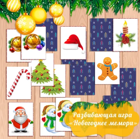 Игра «Новогоднее мемори» развивает зрительную память малыша, произвольное внимание.