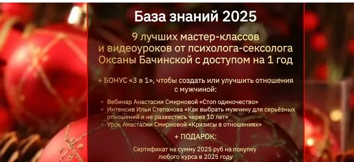 Скачать [Оксана Бачинская] База знаний. 9 лучших мастер-классов и видеоуроков от психолога-сексолога (2025)