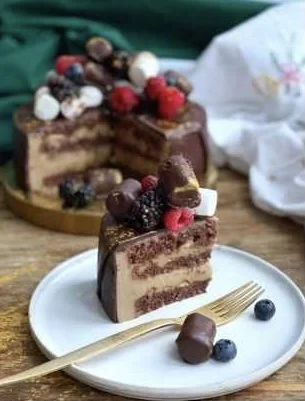 За это в торте отвечает мусс, который точно удивит, потому что в нем есть два знакомых всем продукта, которые никто не ожидает увидеть в торте.