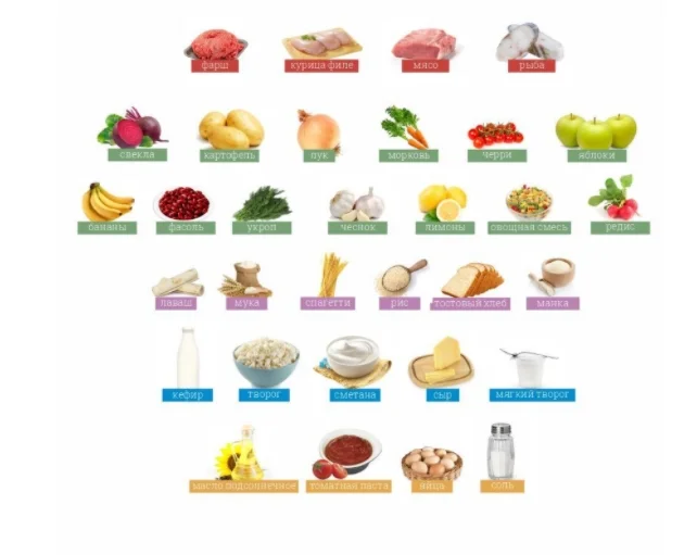 Набор продуктов, который мы использовали в меню, изображен на картинке. По сумме закупа мы уложились в 2500 р. Порции по стандарту рассчитываем на две персоны, но они очень большие.