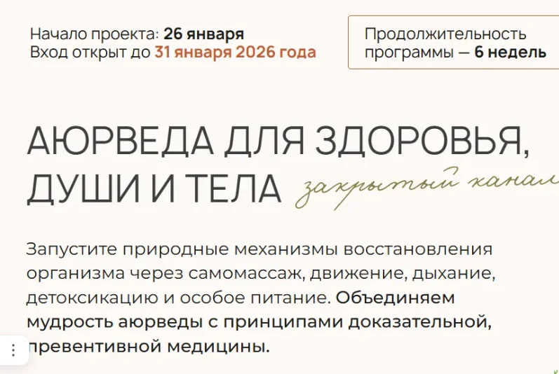 Запустите природные механизмы восстановления организма через самомассаж, движение, дыхание, детоксикацию и особое питание. Объединяем мудрость аюрведы с принципами доказательной, превентивной медицины.