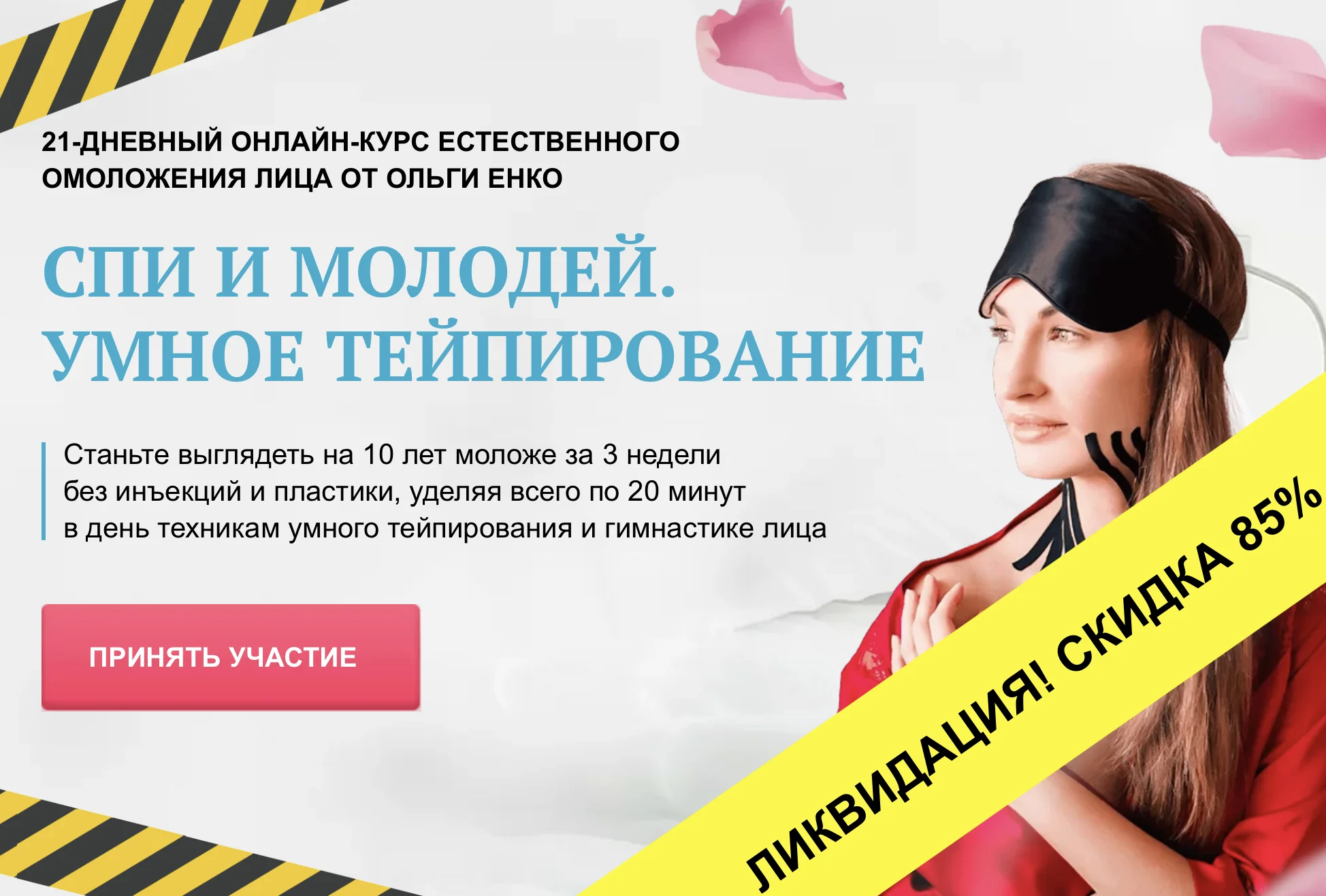 - Тейпирование зоны глаз – от отёков, мешков под глазами и «гусиных лапок»