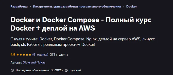 Скачать [Oleksandr Tukas] [Udemy] Docker и Docker Compose - Полный курс Docker + деплой на AWS (2025)
