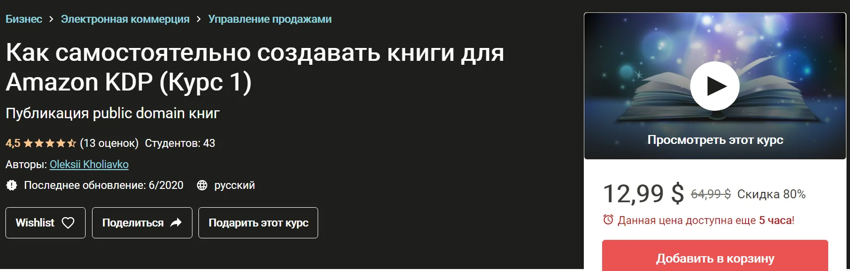 В данном курсе не будут рассмотрены вопросы регистрации на Amazon KDP, а также методы продвижения книг.
