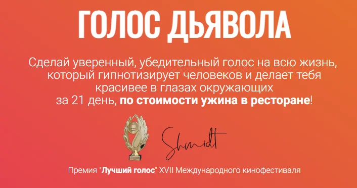 Сделай уверенный, убедительный голос на всю жизнь, который гипнотизирует человеков и делает тебя красивее в глазах окружающих за 21 день, по стоимости ужина в ресторане!