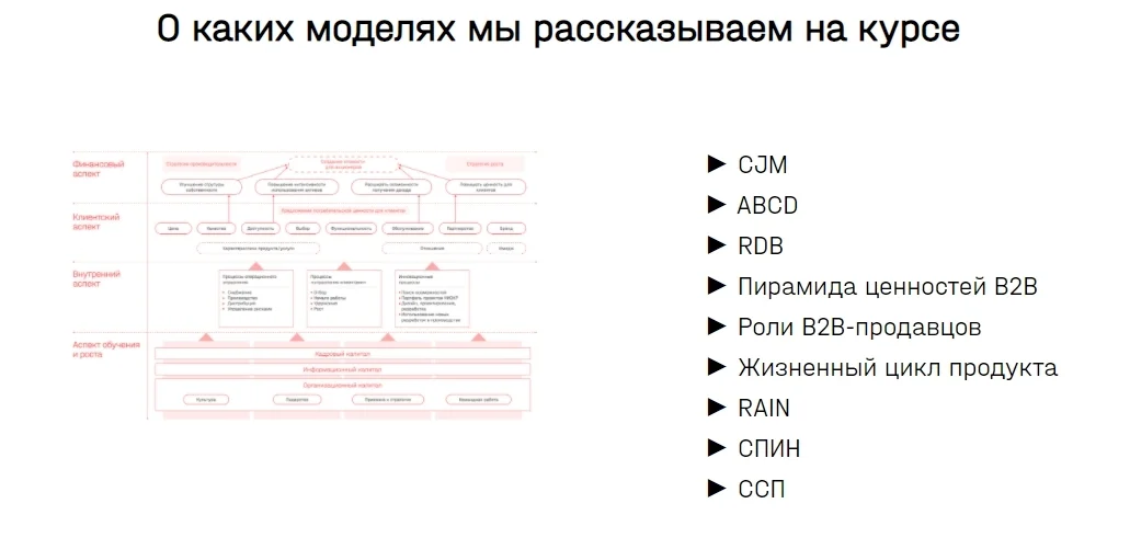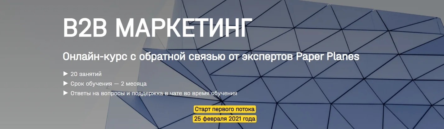 За 10 лет существования агентства у нас было более 480 проектов для B2B-компаний. Это были как крупные игроки на российском рынке (Сибур, Северсталь, Panasonic), так и региональные компании. Сейчас мы выпускаем курс, в котором сконцентрировали весь наш опыт работы с В2В-рынком. В курсе будут уже известные ранее модели с адаптацией под B2B, а также совершенно новые модели.