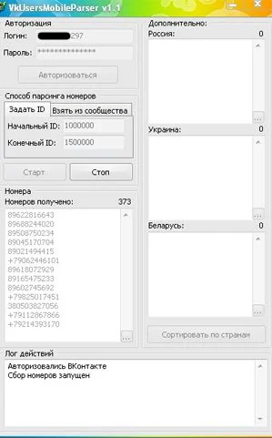 Программы Парсер телефонных номеров вк