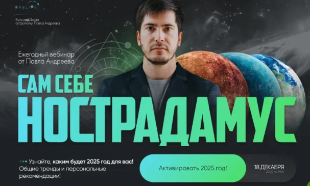 - Павел Андреев в прямом эфире расскажет, как смотреть в астропроцессоре Chronos личный прогноз на 2025 год, и как использовать свои тренды будущего года, учитывая их вариативность