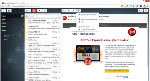 RainLoop способен обрабатывать все основные функции веб-почты и другие удобные функции существуют слишком (как интеграции Dropbox / Facebook / Twitter / Google, автозавершения адресов или сочетания клавиш).