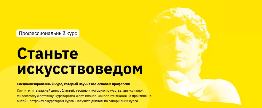 Хотите профессионально разбираться в искусстве, но на переобучение или поступление в университет нет времени и ресурсов? Мы уверены: каждый, кто любит искусство, может стать искусствоведом. И для этого совсем не обязательно 4-6 лет учиться в университете.