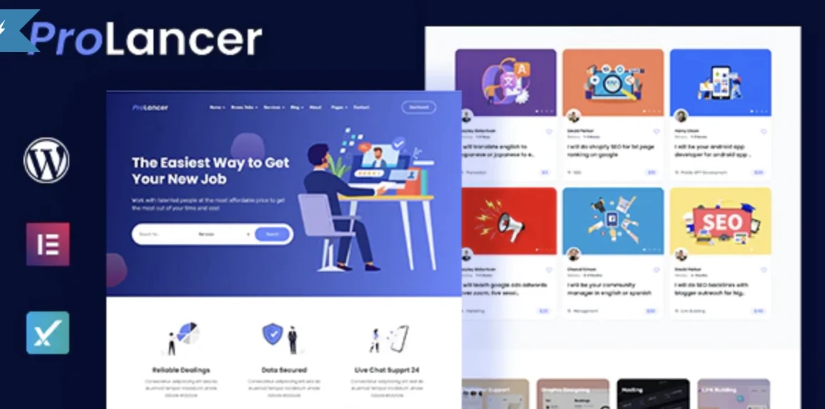 «Prolancer» — это тема WordPress для биржи фриланса со всеми необходимыми мощными функциями для фриланса. Он был спроектирован и разработан в соответствии с требованиями людей, заинтересованных в создании торговых площадок для фрилансеров, таких как Fiverr, Upwork и freelancer.com.
