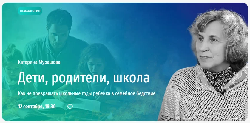«Многие подростки считают, что родители не должны никак участвовать в обучении детей после третьего класса, а до этого — помогать, только если ребенок сам попросит. Как выстроить коммуникацию в семье школьника, чтобы при этом и родители были спокойны, и у ребенка не исчезло право на самостоятельную адаптацию? Что еще можно предпринять, чтобы школьные годы детей не вспоминались потом плохим словом? Расскажу на лекции», — говорит Катерина Мурашова.
