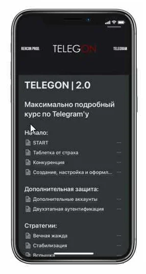 TELEGON 2.0 является премиум курсом, который сделан в современном формате и наполнен максимально подробной актуальной информацией.