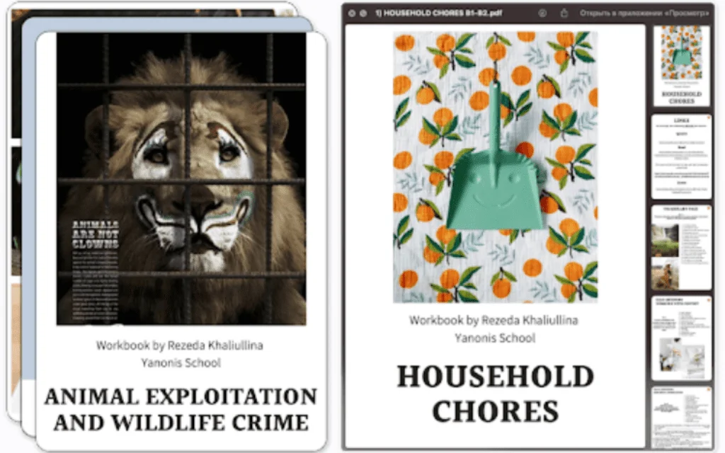 - 13 рабочих тетрадей на важные для подростков и взрослых темы (потребительство, осознанность, наше отношение к природе и животным, питание)