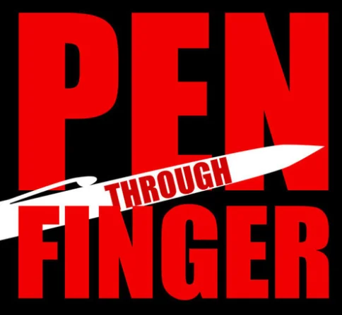 Описание: Продолговатый предмет проходит сквозь промежуточные и проксимальные фаланги среднего пальца, не оставляя после себя следов крови.