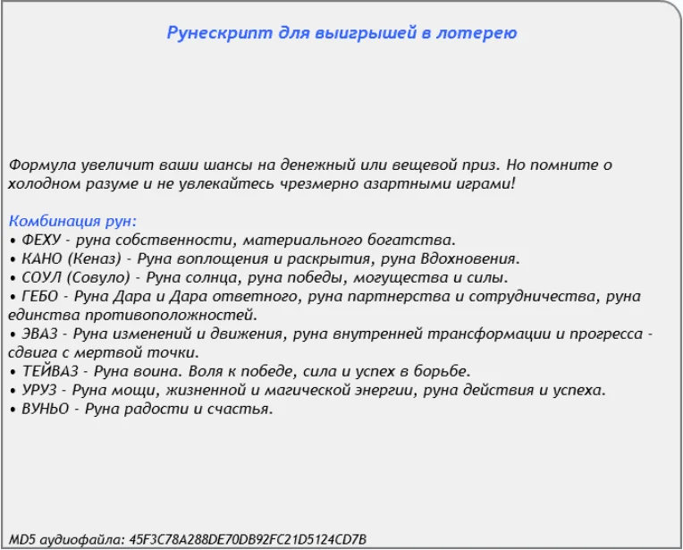 Рунескрипт для выигрышей в лотерею (2017)