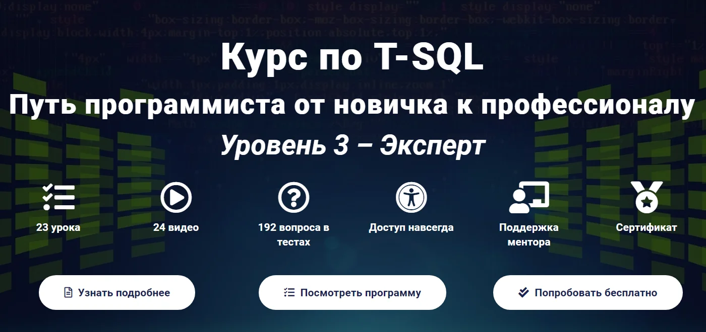 1. Курс рассчитан на разработчиков, которые хотят изучить T-SQL на профессиональном уровне