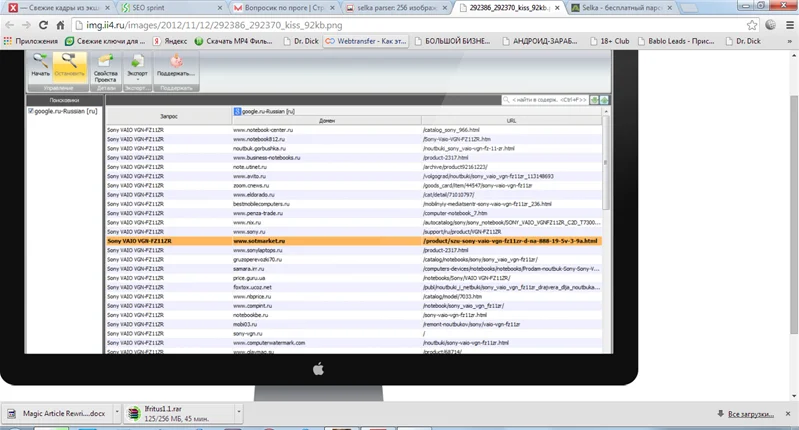 Selka может экспортировать данные в xls и csv файлы. Имеется возможность работы через API и XML. Поддержка работы через Proxy. Есть поддержка AntiGate.