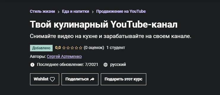 Youtube [Сергей Артеменко] [Udemy] Твой кулинарный YouTube-канал (2021)