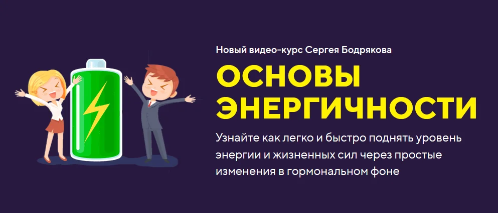 Сейчас я, с гордостью, представляю вам свой новый курс "Основы энергичности". Из него вы узнаете как легко и быстро повысить уровень энергии и жизненных сил, улучшить повседневное настроение и здоровье.