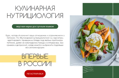«Кулинарная нутрициология» — это единственный в своем роде курс, который объединяет кулинарию и нутрициологию. Он научит вас создавать практикоприменимые рационы на каждый день под любые протоколы и ограничения.