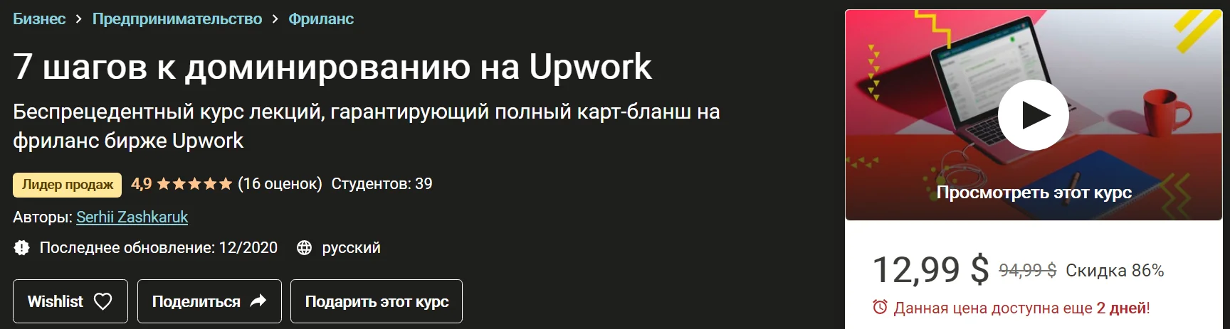 Еще не регистрировался на Upwork, но курс действительно классный. Автор делится реально крутыми фишками, которые помогут зарабатывать на этой фриланс-бирже