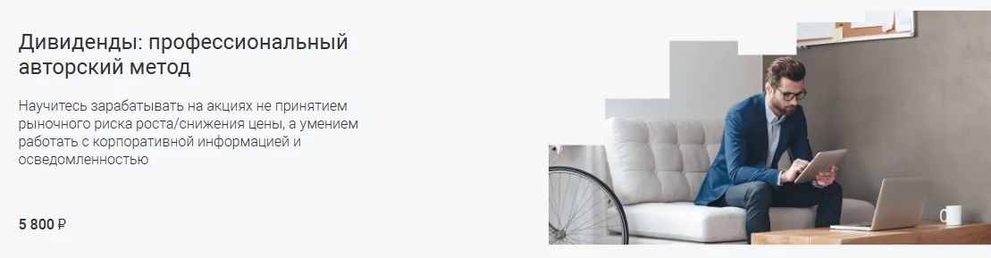 Авторская стратегия ведущего эксперта по получению дивидендов без риска просадки на гэпах закрытия реестра во всех нюансах. На курсе вы научитесь работать с ресурсами, на которые компании публикуют обязательную информацию. Вы увидите, как нелинейно можно зарабатывать на дивидендах ТОП компаний с помощью осведомленности и синтетических позиций. А также научитесь получать дополнительный еженедельный «дивиденд» не только по акциям, но и по фьючерсам.