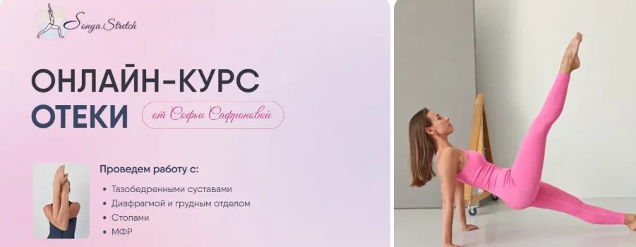 Тренировки в удобном формате «включай и повторяй» направлены на избавление от отеков (работа с ТБС, со стопами, с диафрагмой, с МФР)