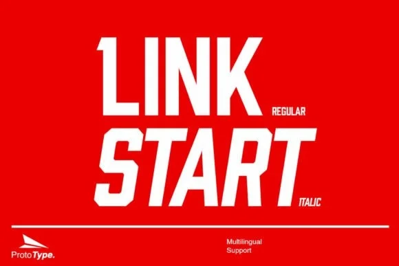 Link Start - это крутой, толстый и современный шрифт с наклонной засечкой.