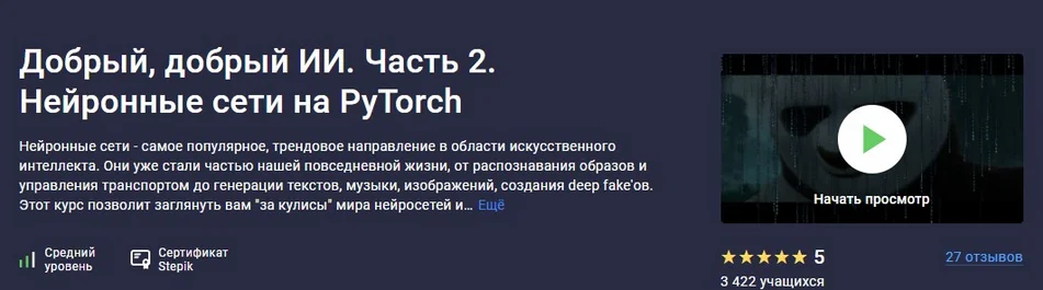 Скачать [Сергей Балакирев] [Stepik] Добрый, добрый ИИ. Часть 2. Нейронные сети на PyTorch (2026)