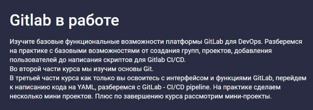 • Сможете самостоятельно на базе GitLab выстраивать процесс CI/CD.