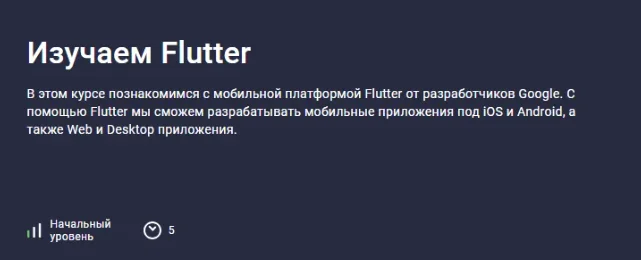 В этом курсе познакомимся с мобильной платформой Flutter от разработчиков Google. С помощью Flutter мы сможем разрабатывать мобильные приложения под iOS и Android, а также Web и Desktop приложения.