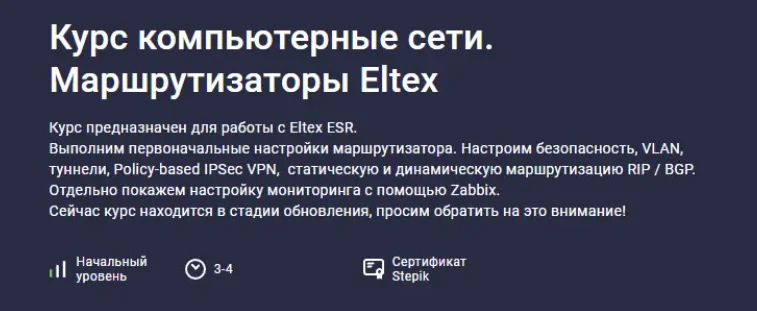 Наш курс специально разработан для тех, кто только начинает знакомство с оборудованием Eltex и стремится получить как теоретические знания, так и практические навыки.