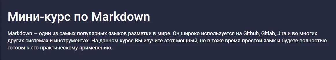 После прохождения данного курса Вы будете полностью готовы к применению markdown на практике.