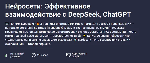 Скачать [Paul Startsev] [Stepik] Нейросети: эффективное взаимодействие с DeepSeek, ChatGPT (2025)