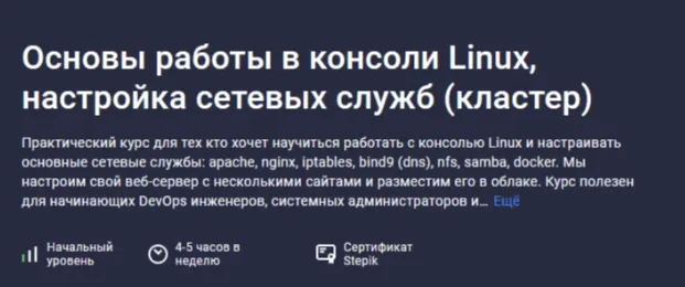Скачать [Stepik] Основы работы в консоли Linux, настройка сетевых служб (кластер) (2024)