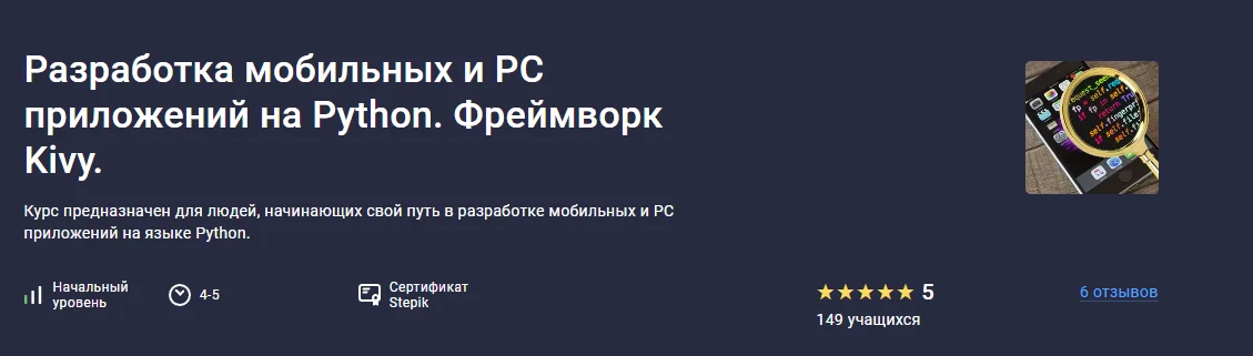 Особенностью курса является то, что он подходит как для начинающих, так и для тех, кто уже имеет опыт в программировании на языке Python. Кроме того, курс предоставляет возможность создания приложений как для мобильных устройств, так и для ПК.
