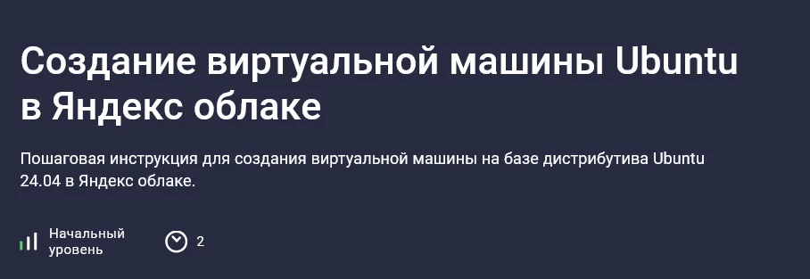 Пошаговая инструкция для создания виртуальной машины на базе дистрибутива Ubuntu 24.04 в Яндекс облаке.