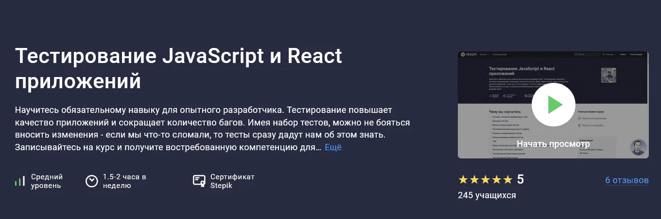 Курсы Stepik [Stepik] Тестирование JavaScript и React приложений (2024)