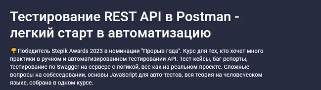 Скачать [Stepik] Тестирование REST API в Postman - легкий старт в автоматизацию (2024)