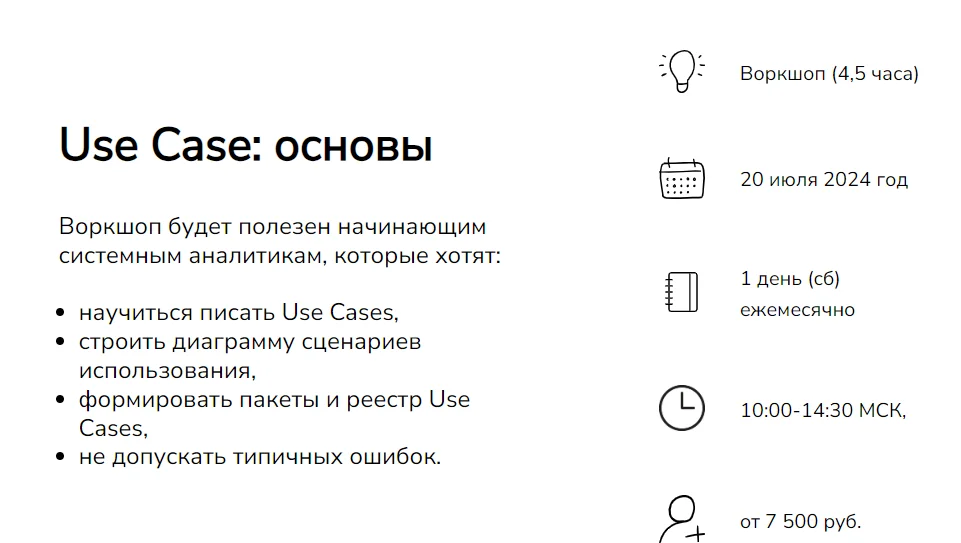 Воркшоп будет полезен начинающим системным аналитикам, которые хотят: