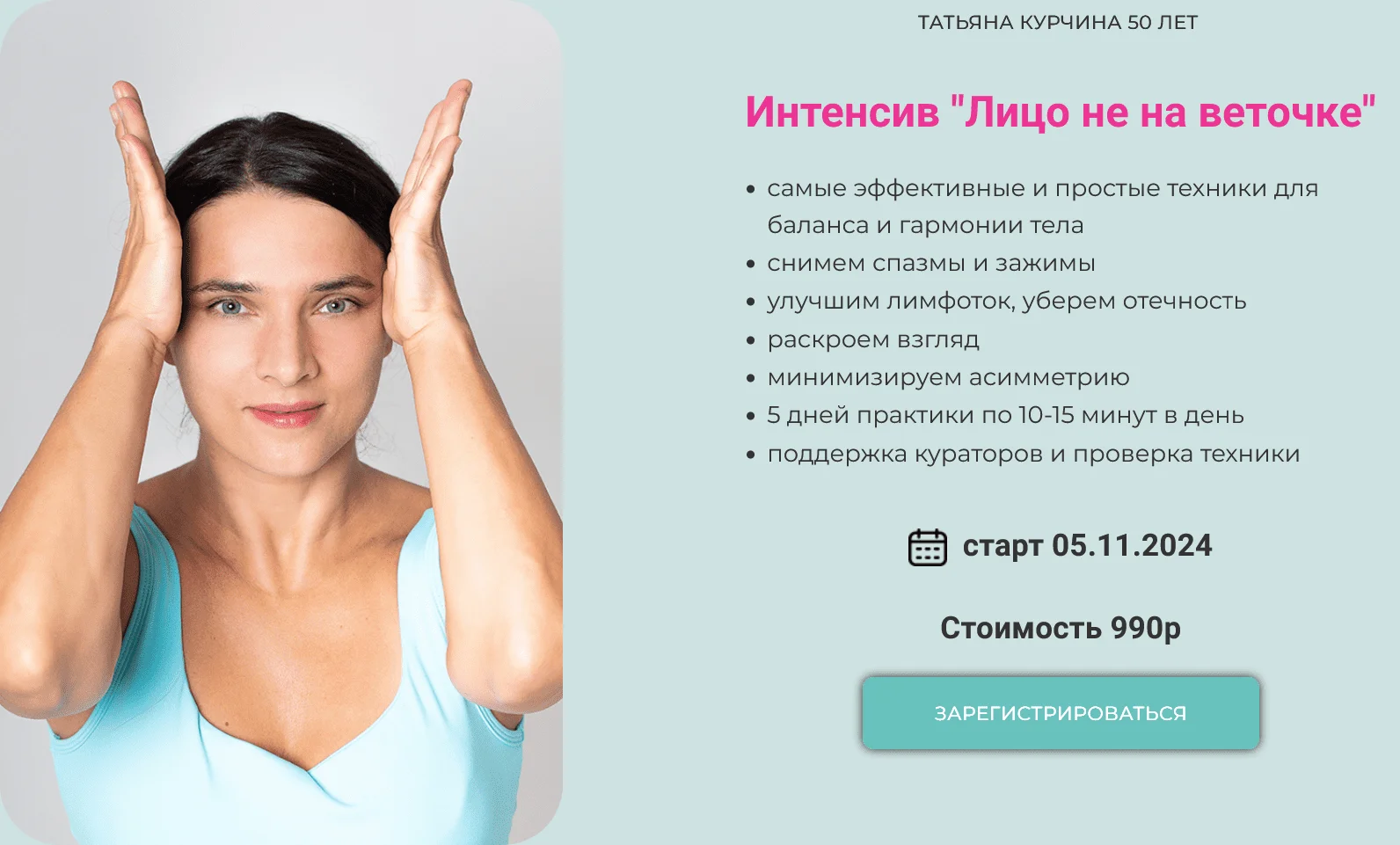 Но вот исправить асимметрию, получить распахнутый взгляд, дышаший лоб, сгладить носогубные заломы можно будет, только занимаясь ещё и телом.