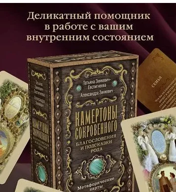 Метафорические карты "Камертоны Сокровенного: благословения и подсказки Рода" с авторскими иллюстрациями - ваши волшебные помощники в работе с внутренним состоянием. Колода карт позволяет почувствовать связь с Родовой памятью, которая поддерживает нас как в бурных водоворотах судьбы, так и в спокойных течениях бытия.